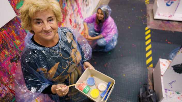 W ostatni wtorek września nasze spotkanie zamieniło się w prawdziwą eksplozję kolorów i kreatywności! Odwiedziliśmy wyjątkową przestrzeń @Art Splash, gdzie czekały na nas farby, pędzle i płaszcze ochronne. Mogliśmy dać całkowity upust naszej wyobraźni, malując nie tylko na płótnach, ale również… po ścianach!